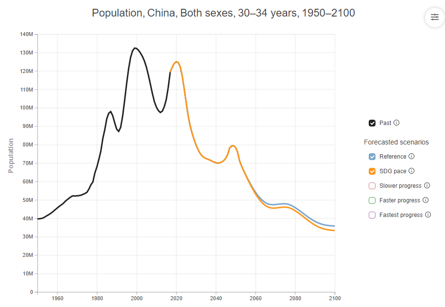 China’s relatively slower cadence of growth is pushing copper prices lower in turn lowering the cost of key inputs for the energy transition. Far be it from me to determine China’s housing policy but a country whose population has peaked and whose key homebuying cohort is shrinking quickly does not need a housing construction boom. Below you can see the size of the classic homebuying cohort of young adults - it is shrinking quickly, and fertility rates are barely over 1 in most of China according to official data and alternative sources show numbers even lower - check Yi Fuxian’s work for examples. I cannot rule out China backsolving for growth using apartments, but I can support China backsolving for growth using renewables which structurally reduce fossil imports and energy inflation.