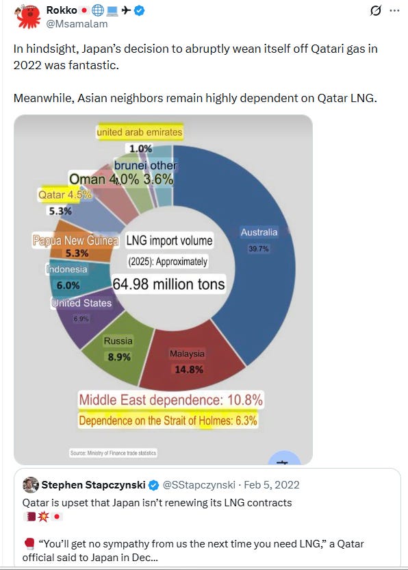 The critical feedback loop is on the supply side. Suppliers adjust their capacity based on utilization. If a supplier’s output is being underutilized — because buyers are stockpiling, sourcing elsewhere, or leaning on domestic production — it gradually cuts capacity. This means the “safe” strategy of heavy domestic production and storage can, paradoxically, make the international market structurally tighter and crises worse when they do hit. This is important to consider today when looking at “Bidenist” policies - pulling all capacity onshore can embrittle global supply chains but similarly, Chinese overcapacity that reduces refining capacity abroad then creates problems as we see in Asian refined products today with China stopping exports and the capacity having been lost.
